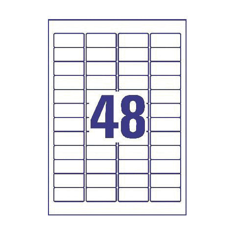 Etichette bianche rimovibili laser/inkjet. Dimensioni: 45,7 x 21,2 mm. N°48 etichette per foglio. Confezione da 25+5 fogli OMAGGIO.
