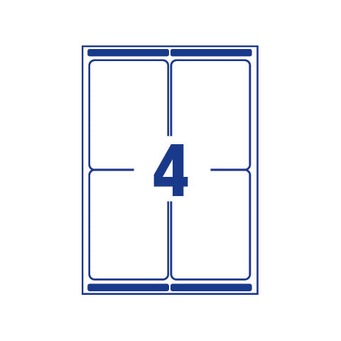 Etichette bianche Ultragrip & Jamfree™ laser ad adesivo permanente. Dimensioni: 99,1 x 139 mm. N°4 etichette per foglio. Confezione da 50+10 fogli OMAGGIO.