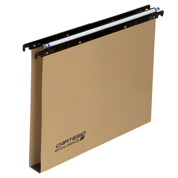 ''cartelle sospese di ottima qualita', elevata convenienza e con i massimi requisiti in termini di sostenibilita' ambientale. La percentuale in peso di materiale riciclato e' superiore al 95% e sono dotate di una doppia certificazione ecologica (fsc® e der blauer engel.fabbricate con i migliori materiali e le migliori tecniche produttive, sono garantite 10 anni.realizzate in cartoncino kraft robusto (peso di 240 gr/mq