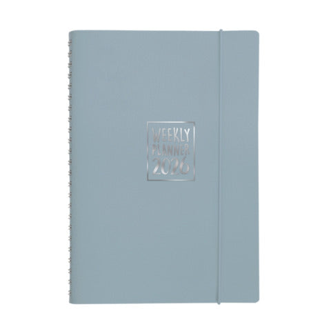 BIEMBI - Agenda settimanale 2026 grigio spiralata con copertina in cuoio rigenerato 15x21 cm - BNZ265C69-G