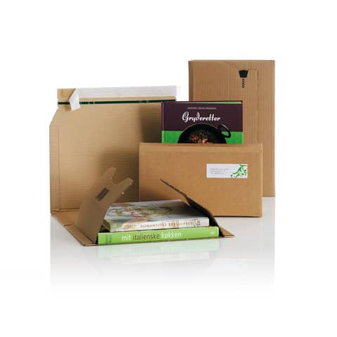 Scatola universale Unipack avana A5+. Formato interno: 249x165x<60 mm. Chiusura strip extra forte,rapida e sicura. Doppia protezione su tutti i bordi. Ideali per la spedizione di stampati, articoli multimediali, elettronici, tessili e promozionali. Apertura facilitata per una semplice e sicura estrazione del contenuto. Ecologico, realizzato in materiale riciclabile e riciclato al 100%. Cartoncino micronda avana tipo E 1,2. Confezione da 25 pz.