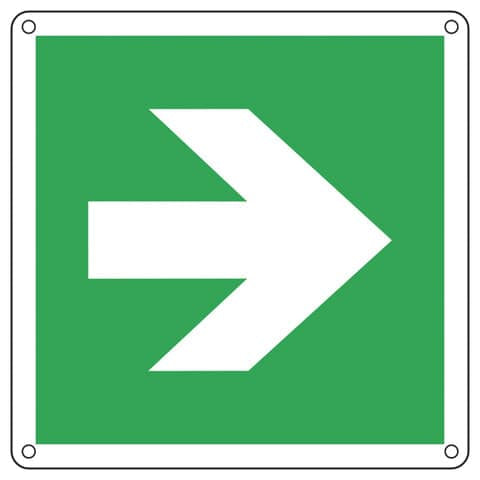 Cartello d'emergenza. ''Freccia a destra/sinistra''. Solo simbolo. Sfondo verde. EN ISO 7010. Alluminio piano spessore 5/10. Dimensioni: 25x25 cm