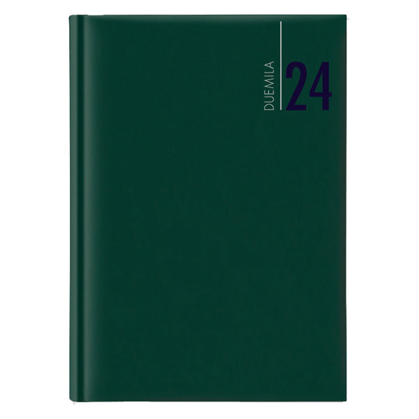Agenda settimanale a blocco fisso, copertina in carta imbottita, carta bianca con stampa a due colori. Sabato/domenica abbinati.