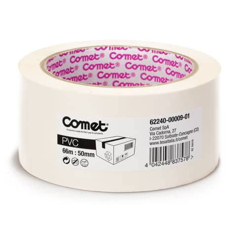 COMET - Nastri adesivi per la spedizione in pvc con adesivo in gomma naturale 50 mm x 66 m bianco - 62240-00009-01