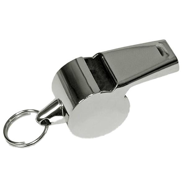 Fischietto in metallo cromato con anellino per l aggancio di una cordicella o di una catenella. Per arbitro, bagnino, polizia locale e vigili urbani.