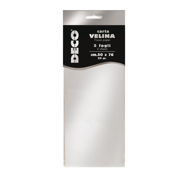 DECO - Busta 5 fogli carta velina metallizzata 20gr 50x76cm argento - 12455/2 - Confezione risparmio da 4 PZ