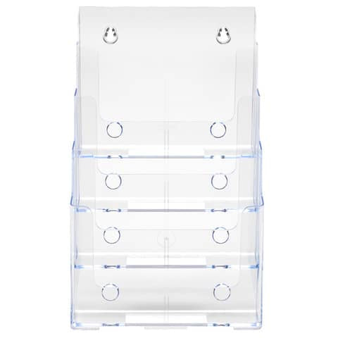 Portastampati da banco a 4 livelli in polistirene trasparente. Formato A4. Dimensioni 24x17,5x34,5 cm.