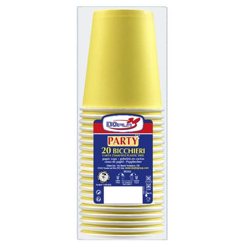 DOPLA-PARTY - Bicchieri carta wd 250 ml conf. 20 pz dopla green giallo - 42189 - Confezione risparmio da 2 PZ