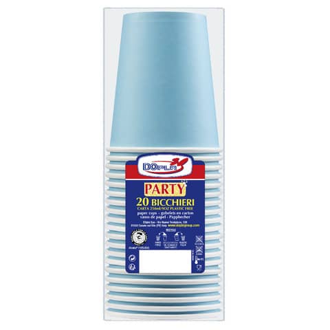 DOPLA-PARTY - Bicchieri carta wd 250 ml conf. 20 pz dopla green azzurro - 42190 - Confezione risparmio da 2 PZ