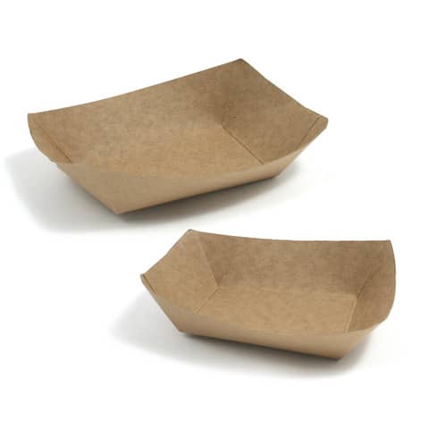 Vaschette per salsa. Capienza: 120 ml / 4Oz. Realizzate in carta kraft. Altezza: 35 mm. Peso netto unitario: 4,2 grammi. Materiale: carta + PE. Adatte al contatto con alimenti fino a una temperatura massima di 90 °C per 15 minuti. Non utilizzabile in forno. Confezione composta da 50 pezzi.
