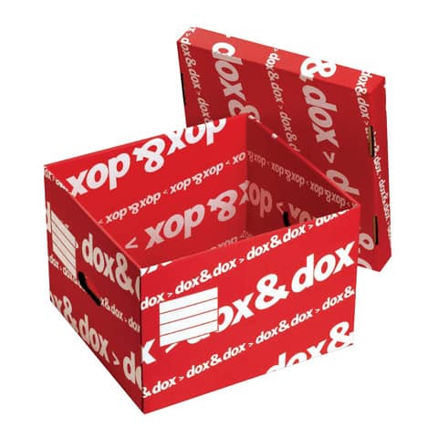 Scatola con coperchio Dox&Dox. Contenitore con coperchio, ideale per contenere documenti voluminosi oppure 2 scatole archivio Dox&Dox . Doppio strato di cartone su tutti i lati e il triplo fondo per una massima tenuta e resistenza anche a pieno carico. Spazio frontale e laterale per la personalizzazione del contenuto. Termoformato singolarmente. Colore: rosso.