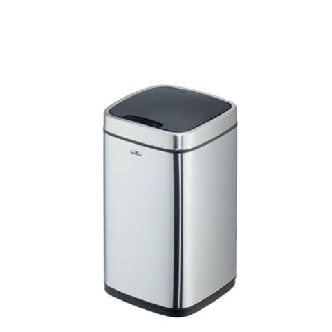 Cestino per rifiuti con capacità 12 litri e funzionamento contactless, che permette di smaltire i rifiuti senza entrare in contatto con il contenitore. Il sensore di movimento fa aprire il coperchio, che si richiude automaticamente; nel caso in cui il sensore non rilevasse il movimento è possibile aprire e chiudere il coperchio manualmente tramite i tasti Open/Close. Il coperchio ha una chiusura rallentata e silenziosa. Dotato di contenitore interno estraibile con maniglia, ideale per un facile smaltimento dei rifiuti, e anello ferma sacco di rientranza sul retro per il trasporto. Realizzato in acciaio inossidabile con rivestimento che previene ditate o impronte. La base è antiscivolo e con forma quadrata salvaspazio. Alimentato da 4 batterie AA (non incluse). Dimensioni: 24 x 43 x 24 cm (L x H x P).