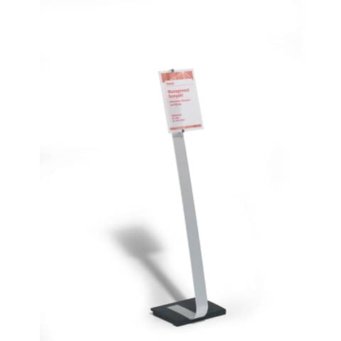 Elegante espositore da pavimento di alta qualità ideale per essere collocata anche in ambienti ricercati.Realizzato in alluminio con pannello in acrilico trasparente antiriflesso e base antiscivolo in ghisa che assicura la perfetta stabilità grazie ai piedini in gomma. Il pannello ha un angolo visivo di 10° e può essere facilmente ruotato dalla posizione verticale a quella orizzontale ed è regolabile in altezza. Adatto per essere abbinato alle targhe Crystal Sign. L'inserto traslucido incluso è utilizzabile con stampanti laser a colori o monocromatiche e può essere personalizzato on-line tramite il software gratuito DURAPRINT® sul sito www.duraprint.it. Stampato e posizionato tra i due pannelli, assicura un impatto estetico unico simile alla serigrafia.Altezza A4 verticale: 1.18 m/1.11 mAltezza A4 orizzontale: 1.13 m/1.06 m.