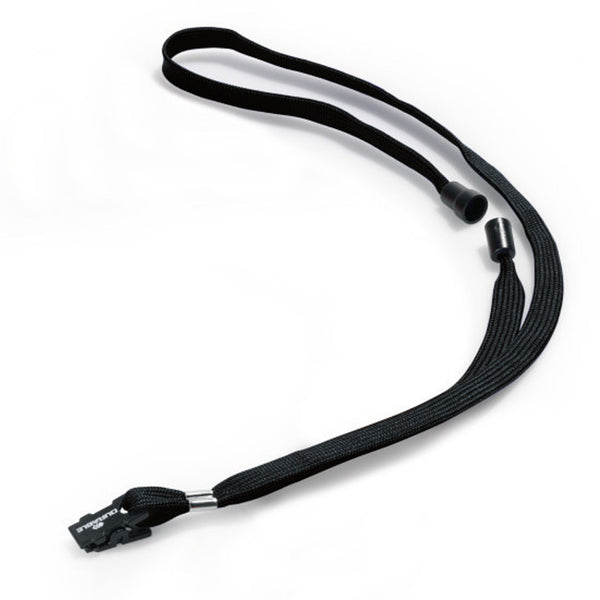 Cordoncino in tessuto larghezza 10mm con chiusura di sicurezza e clip finale a pinza per l'aggancio a portabadge. Lunghezza 44 cm. Adatto al pass di sicurezza 8118 e tutti i badge durable dotati di asola di aggancio.