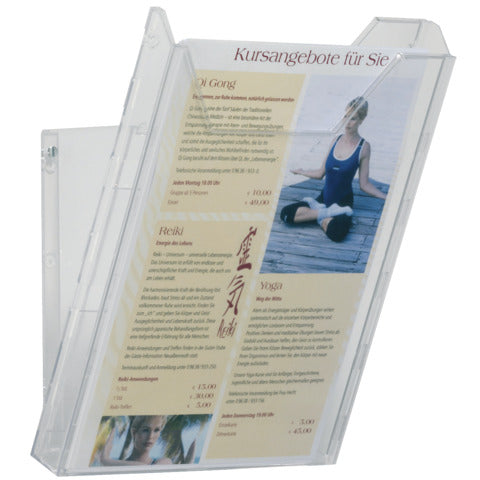 Espositore portadepliant adatto a materiale espositivo formato A4, dal design semplice ed elegante.VERSATILE: può essere usato sia da tavolo che da parete senza dover acquistare adattatori addizionali: semplicemente i supporti posteriori possono essere ruotati di 180° per trasformare il modulo da tavolo in quello da parete in pochi secondi, mantenendo un angolo di visione ottimale in entrambi i casi. MODULARE: è un sistema ad incastro che permette di combinare tra loro moduli Combiboxx anche di diverso formato.ESTENDIBILE: la capacità può essere estesa tramite il COMBIBOXX A4 extension cod. 8579.Dimensioni da parete: 242 x 152 x 300 mm (LxPxH).Dimensioni da tavolo: 242 x 162 x 291 mm (LxPxH).
