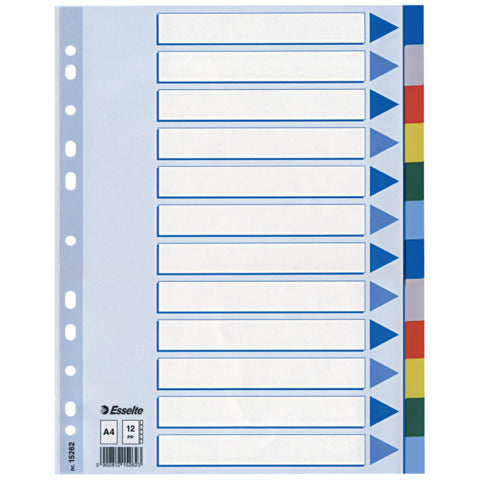 ESSELTE - Separatore neutro in ppl 12 tasti colorati f.to a4 - 15262 - Confezione risparmio da 2 PZ