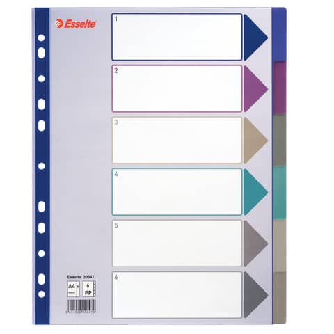 ESSELTE - Separatore in ppl traslucido 6 tasti f. To a4 maxi 24,5x29,7cm