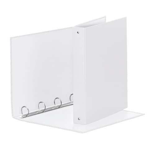 Raccoglitore in robusto cartone da 2 mm di spessore rivestito in polipropilene (bianco internamente. Solidita' e affidabilita' dei materiali rendono il prodotto ideale per un uso intensivo domestico o in ufficio, mentre il rivestimento fornisce eleganza e gradevolezza al tatto. Meccanismo a 4 anelli tondi (diametro 30 mm. Formato utile 22x30 cm. Dimensioni esterne 27,5x31,5x4,5 cm. Capacita' 200 fogli (da 80 gr/mq. Colore bianco.