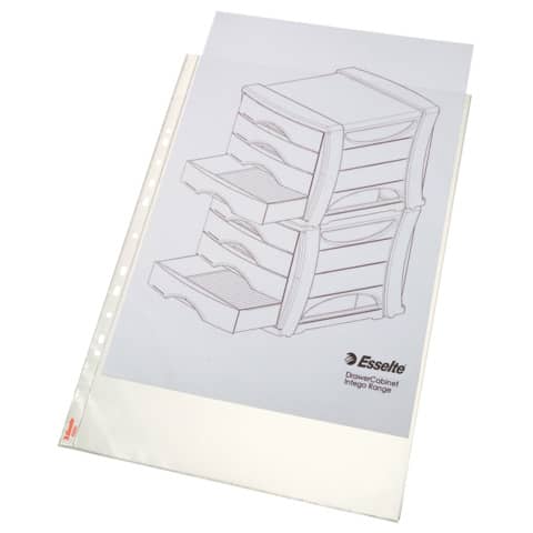 ESSELTE - Buste a perforazione universale deluxe goffrate antiriflesso trasparente 30x42 cm conf. 50 pezzi - 55231