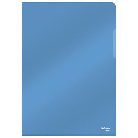 Cartelline a L realizzate in PVC extralucido rigido colorato. La particolare finitura lucida dona una superiore brillantezza e trasparenza alle buste, conferendo prestigio ai documenti archiviati. Formato A4, colore blu. Confezione composta da 25 pezzi.