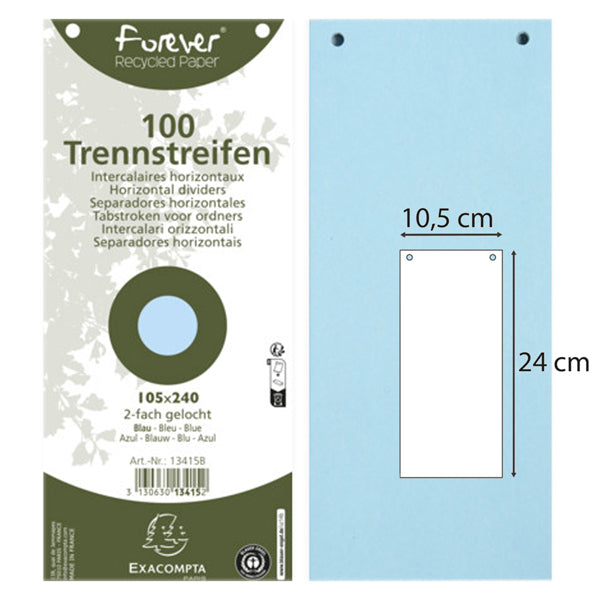 EXACOMPTA - Conf.100 divisori orizz. Riciclati 105x240mm forati azzuro - 13415B - Confezione risparmio da 2 PZ