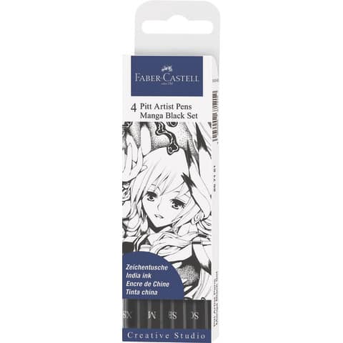 FABER-CASTELL - Penna inchiostro pigmentato faber castell pitt artist conf. 4 pezzi - manga set nero - 267121