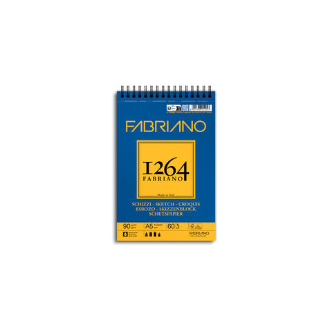 Blocco spiralato 1264 schizzi 90 grammi, la carta presenta una superficie leggermente avoriata con una leggera grana. Permette di realizzare degli schizzi dal vero di una raffinatezza estrema. Fogli microperforati con formato reale dopo lo strappo.Carta certificata FSC, Acid Free e prodotta con energia idroelettrica. Formato A5, 60 fogli. Spirale sul lato corto.