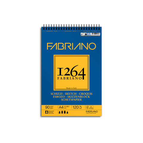 Blocco spiralato 1264 schizzi 90 grammi, la carta presenta una superficie leggermente avoriata con una leggera grana. Permette di realizzare degli schizzi dal vero di una raffinatezza estrema. Fogli microperforati con formato reale dopo lo strappo.Carta certificata FSC, Acid Free e prodotta con energia idroelettrica. Formato A4, 120 fogli. Spirale sul lato corto.