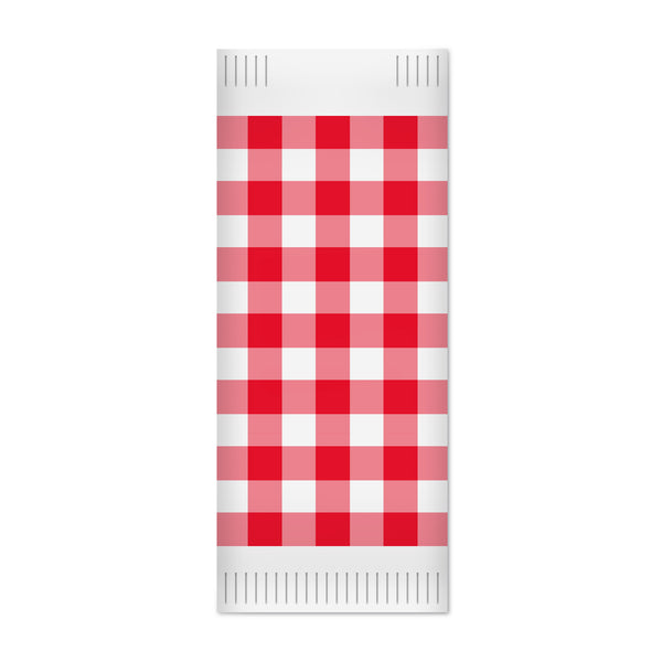 Confezione da 1000 porta posate di carta. Gamma informale in cellulosa decorata per tutti i giorni. Linea snack colore: quadretti rossi e bianchi. Idoneo al contatto alimentare.