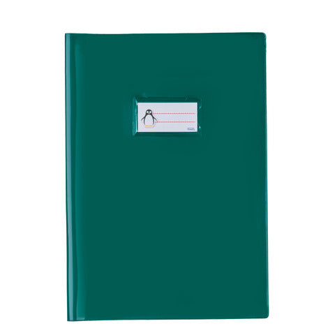 Coprimaxi C25E Francese realizzati in PVC con spessore 250 µm con alette ripiegate da 18 cm, portanome e listelli blocca quaderno centrali. Finitura coprente laccata lucida. 100% riciclabili. Adatti per quaderno A4 - formato 21x29,7 cm. Colore verde scuro.