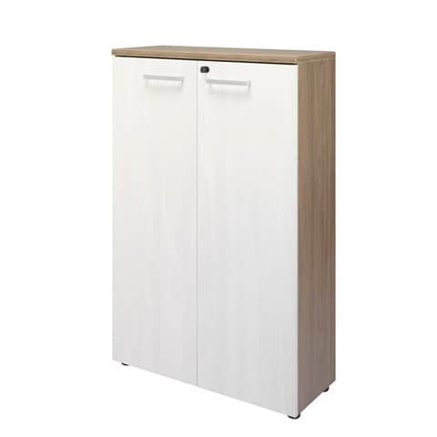 Ante in nobilitato melaminico di spessore 18 mm, con maniglia color grigio alluminio, serratura e cerniere ammortizzate.