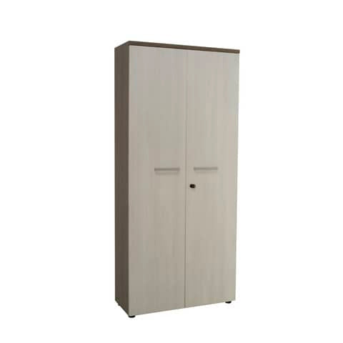 Ante in nobilitato melaminico di spessore 18 mm, con maniglia color grigio alluminio, serratura e cerniere ammortizzate.