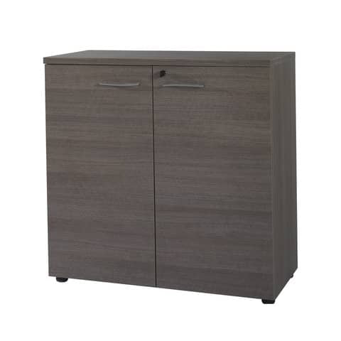 Ante in nobilitato melaminico di spessore 18 mm, maniglia color grigio alluminio. Con serratura. Adatte per mobile basso codice 116393.