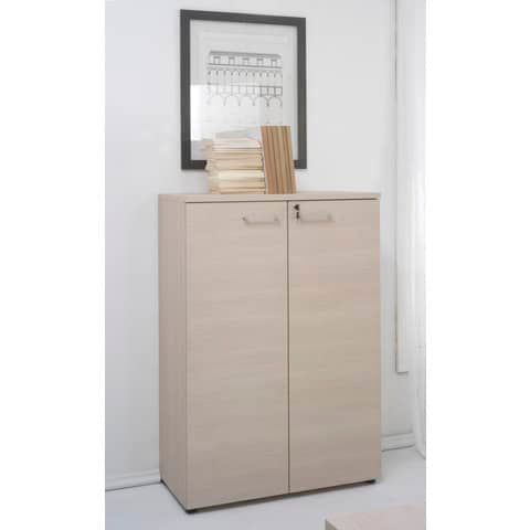 Ante in nobilitato melaminico di spessore 18 mm, maniglia color grigio alluminio. Con serratura. Adatte per mobile basso codice 116382.