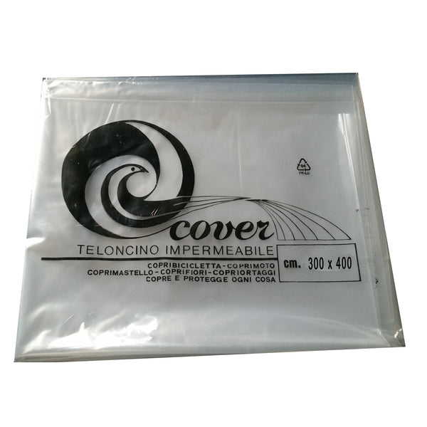 Teli in politene trasparente e impermeabile spessore 60 micron, ideali per coperture durante lavori di tinteggiatura o di manutenzione. Utili anche per coprire e proteggere fiori, ortaggi, biciclette, mobili da giardino ecc. Formato 300x400cm.
