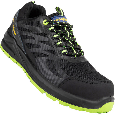 Scarpe antinfortunistiche in tomaia KPU e mesh GY BLACKBAT S1P SRC. TG.45. Colore: nero-verde. Metal free. Tomaia in KPU e Mesh ad elevata flessibilità e resistenza all’usura e agli agenti atmosferici, con rinforzo sul tallone e sulla punta per una migliore tenuta contro le abrasioni, fodera in mesh antibatterico, allacciatura stringata Bicolore. Plantare removibile anatomico. Puntale in fibra di vetro antischiacciamento. Soletta in Kevlar antiperforazione. Battistrada leggero e flessibile in PU compatto bi-densità resistente agli idrocarburi, agli oli minerali, allo scivolamento e dotato di sistema di assorbimento di energia al tallone. Certificazione: EN ISO 20345:2011.