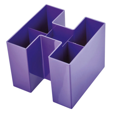 Organizzare non è mai stato così facile: grazie al distintivo supporto da scrivania a 5 scomparti Bravo. Il disordine sul posto di lavoro sarà solo un ricordo. Dotato di 5 scomparti di diverse altezze (4 più alti e uno più basso al centro), garantisce l’ordine dei tuoi prodotti di cancelleria: penne, evidenziatori e minuteria da ufficio. I piedini in gomma antiscivolo sono ideali per le scrivanie. Dimensioni: 109 x 109 x 90 mm. Colore: lilla.