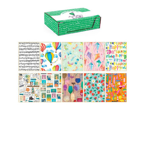 Carta regalo Kartos assortimento Fantasy 1. Formato 70 x 100 cm in confezione da 100 fogli piegati in sedicesimi. Formato chiuso 34 x 25 cm. Stampa offset su carta patinata da 80 g/m². Disponibile in 10 soggetti assortiti.