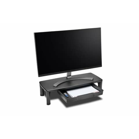 Il supporto per monitor SmartFit® di Kensington con cassetto combina tutti i vantaggi di un supporto per monitor regolabile a quelli di un ulteriore spazio di archiviazione e organizzazione sulla scrivania. Grazie alla tecnologia SmartFit® brevettata di Kensington che assicura una personalizzazione completa, il supporto consente di sollevare il monitor al fine di promuovere una corretta postura e di aumentare la produttività. Il comodo cassetto consente di organizzare tutti gli accessori utili sulla scrivania come penne, pinzatrici e caricabatterie. Il supporto per monitor SmartFit® con cassetto supporta iMac, PC all-in-one e monitor esterni fino a 30'' e 15 kg. Dimensioni 240 x 550 x H. 132 mm.