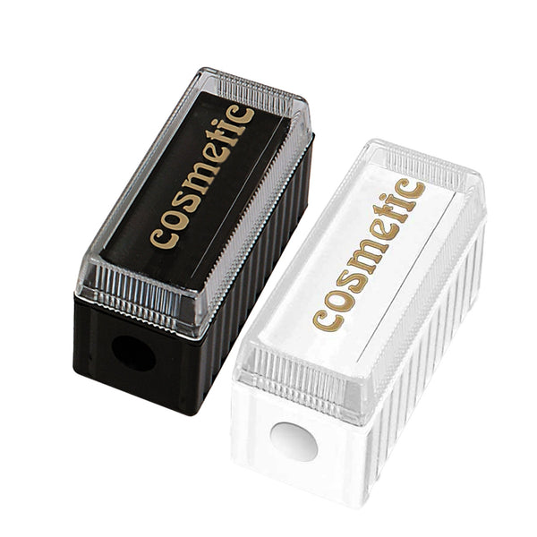 Temperamatite cosmetico con specchio. Serbatoio rettangolare a 2 fori.
