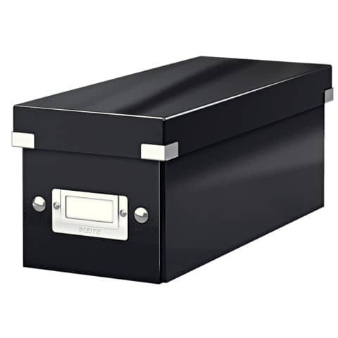 Scatole clickestore leitz in cartone per archivio dal design moderno elegante e professionale. assemblaggio veloce e semplicissimo. Doppia chiusura (interna ed esterna e doppio strato di cartone sui bordi per una maggiore resistenza e stabilita'. Rivestimento in polipropilene lucido ed inserti in metallo nichelato. Formato 14,5x13,6x35,2cm.