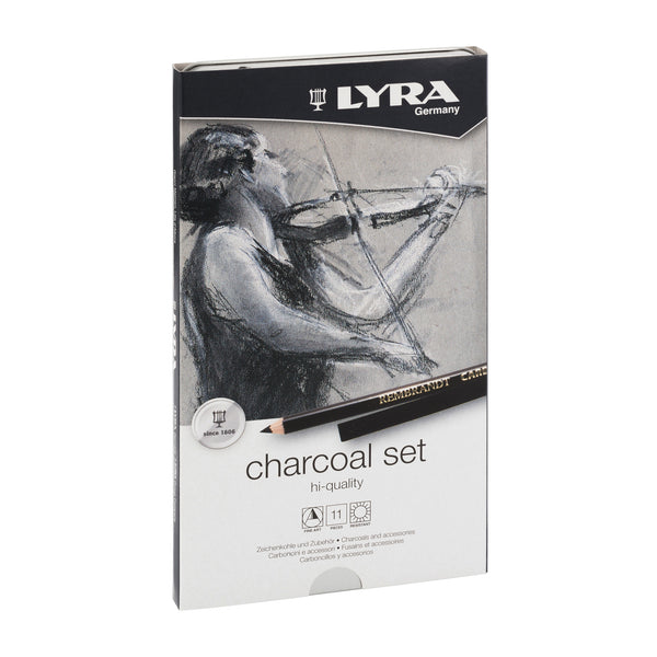 Assortimento di carboncini in matita e stick di qualita' superiore con mina scorrevole che lascia un segno evidente. Un ottimo equilibrio di diverse gradazioni, completo di mine morbide, medie e dure. Ideali per abbozzo, disegno e schizzo monocromi. Si sfumano con facilita'. Si consiglia gomma pane e fissativo. Il set contiene: 1 stick carboncino naturale, 1 matita carbon soft, 1 matita carbon hard, 1 matita carboncino soft, 1 matita carboncino medium, 1 matita carboncino hard, 1 stick carboncino 7x7 mm, 1