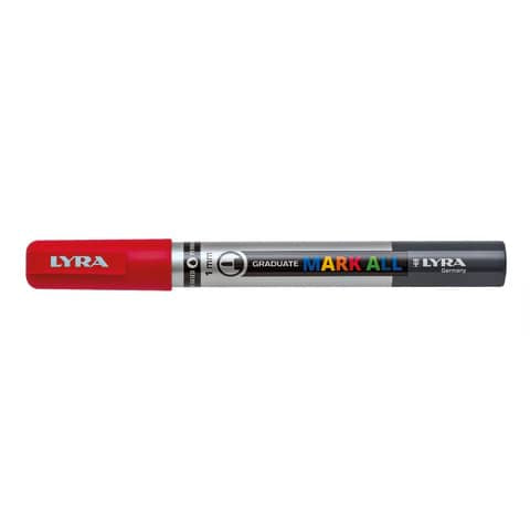 Lyra Graduate Mark All è il marcatore a tempera multisuperficie per decorare e colorare. La punta tonda da 1 mm è perfetta per personalizzare gli oggetti più svariati e per le piccole superfici, grazie al pennino di altà qualità. Gli inchiostri sono coprenti e i colori sovrapponibili per una resa opaca che resiste alla luce e all'acqua. Lyra Graduate Mark All 1 mm è disponibile il 18 colori 12 colori standard, oro, argento e 4 colori fluo. Giallo