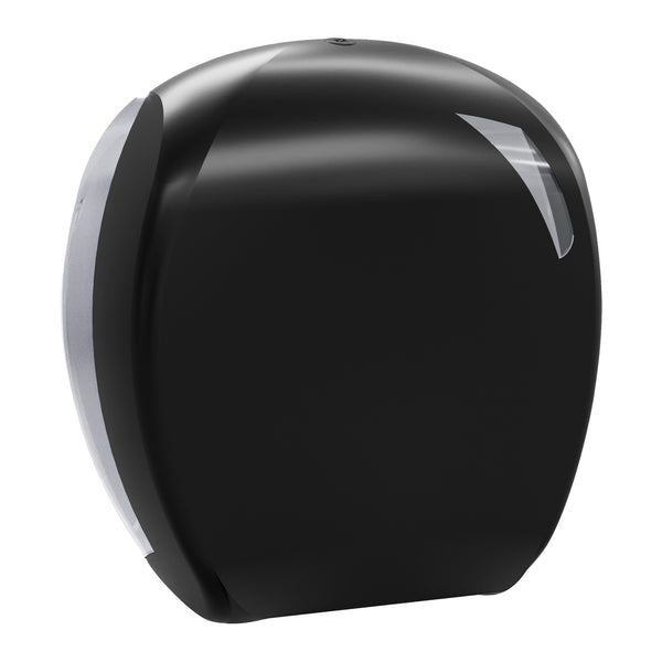 Dispenser per rotolo carta igienica grazie delle dimensioni ridotte, che si adatta anche agli ambienti piu' ristretti. Dimensioni: 29,6 x 13,5 x 27,7cm. Compatibile con: carta igienica in rotolo d 24 cm. Modalita' di fissaggio: viti e tasselli. Chiusura: a chiave. Altezza di montaggio: 60-70 cm. In plastica riciclata.