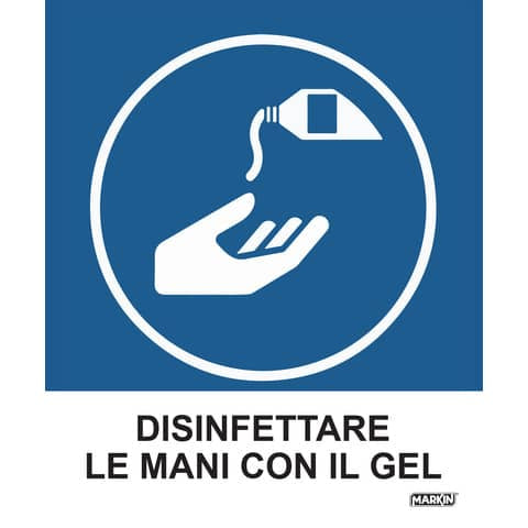 MARKIN - Adesivo segnaletico ''disinfettare le mani con il gel'' in lwm - 12,5x15,2 cm - conf. 2 pezzi - X110COV-5 - Confezione risparmio da 4 PZ