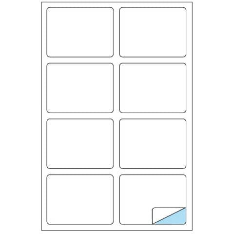 Scatola 100 fogli etichette bianche Copiatabu 99,1x67,7 mm. Angoli arrotondati. In scatola da 100 fogli formato A4. Adesivo permanente universale, acrilico a base dacqua. Ottima resistenza al calore. Buona adesione su cartoni e superfici non-polar. Buona adesione anche alle basse temperature -20°+100°C. Carta di pura cellulosa lisciata in macchina. Grammatura 70 g/m2 ISO 536. Punto di bianco 98% ISO 2470/1. Stampabilità: INKJET, LASER e fotocopie, flexo, offset, tipo e serigrafia. 8 etichette per foglio. 800 etichette per confezione. Made in Italy.47,5x25,5 Mm