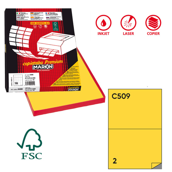 MARKIN - Etichetta adesiva c/509 giallo 100fg a4 210x148,5mm (2et/fg - X210C509GI