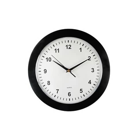 Sottile orologio da parete, funzionamento con una batteria stilo alkalina AA (non inclusa). Diametro Ø 31,5 cm. Spessore 2,5 cm. Colore: nero.