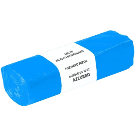 MOBY-SACK - Sacchi immondizia per rifiuti inorganici moby sack 110 l - 70x110 cm azzurro - rotolo da 10 pezzi - 6114 - Confezione da 5 PZ