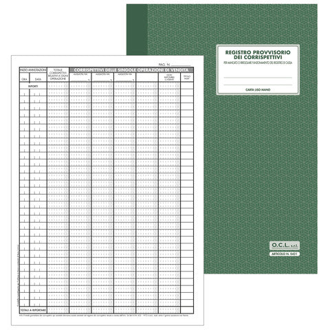 O.C.L. - Registro provvisorio dei corrispettivi per mancato funzionamento registratore di cassa 21x29,7 cm - 0421 - Confezione risparmio da 2 PZ
